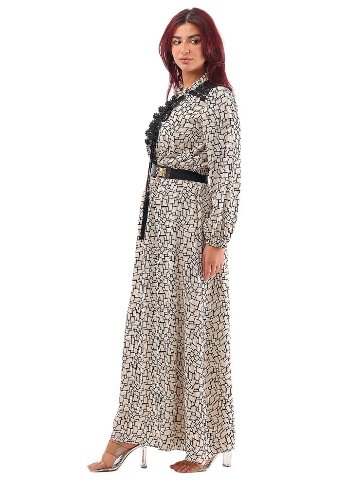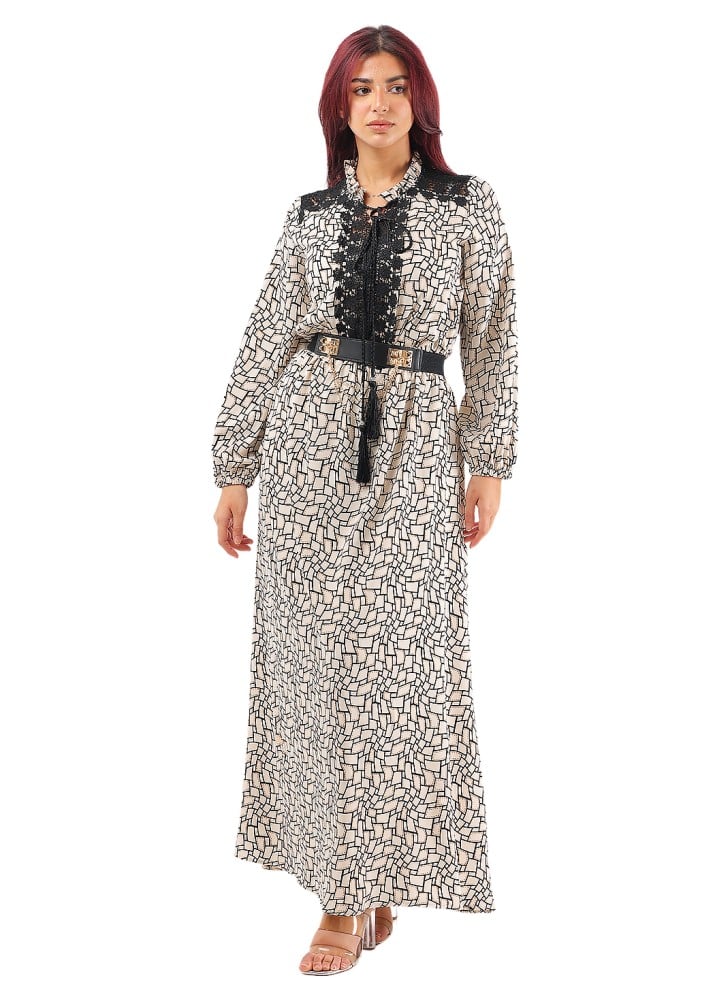 - ألى كل سيدة مغرمة بصيحات الموضة , صمم هذا الفستان الطويل ليواكب اناقتك العصرية فستان نسائي بطبعات مربعات بلون البيج