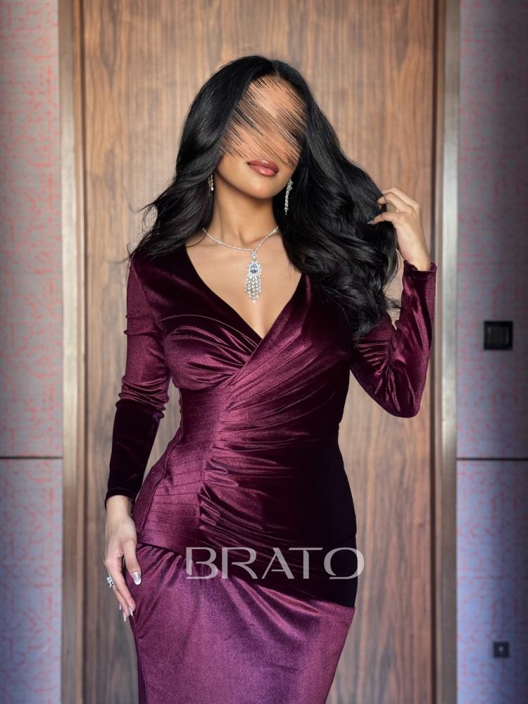 فستان سهرات مصنوع من قماش المخمل الفاخر ، يمنحك إطلالة ملكية فريدة واناقة خليجية راقية تصميم ، يعكس الفخامة والذوق .